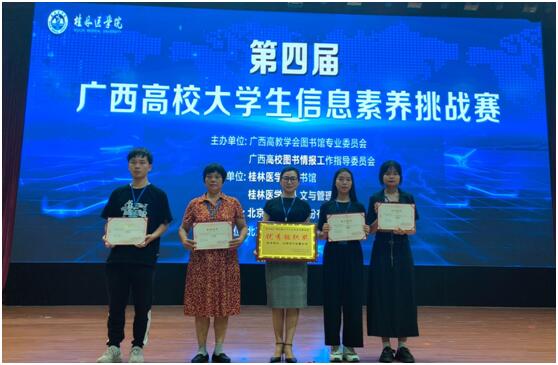 据悉,广西高校大学生信息素养挑战赛是广西高教学会图书馆专业委员会和广西高校图书馆情报工作指导委员会举办的,旨在提高大学生信息检索能力,培养大学生信息综合应用能力,增强大学生信息伦理与安全素养,全面提升大学生信息素养水平和科研能力。本次比赛分个人赛和团体赛进行,4月6日开始启动,历时2个月,共有来自全区47所高校2万多名学生参赛,近900个团队参赛。我校选手在个人赛前50名获奖名单有9名学生入围,其中一等奖2人、二等奖4人,三等奖3人;在团体赛的决赛中,我校由理学院郑路褀、周琼、邓淑娟三名同学组成的团队获得一等奖;比赛指导老师冯小丽获得了“优秀指导老师”。