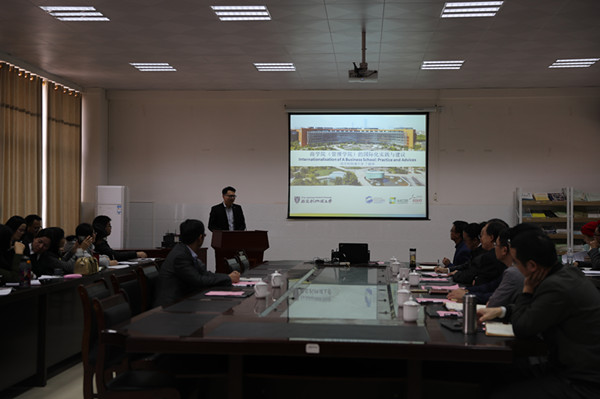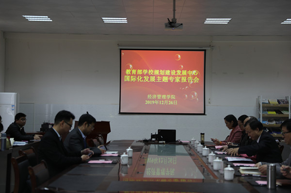 12月26日下午,教育部学校规划建设发展中心国际化发展主题专家报告会在我校经济管理学院301会议室举行,广西高校转型发展研究院、国际教育与外国语学院、经济管理学院等下相关领导出席报告会,经济管理学院和国外院的教师代表参加了报告会。报告会由经济管理学院院长朱芳阳主持。