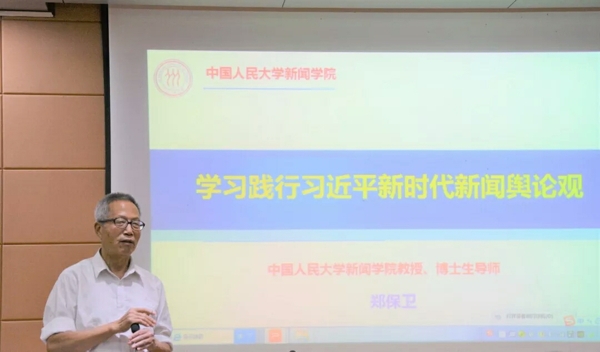 郑保卫系中国人民大学新闻学院博士生导师、教育部国家研究基地中国人民大学新闻与社会发展研究中心主任,马克思主义理论研究和建设工程新闻传播学科首席专家、全国新闻学研究会会长。当晚,我校新闻宣传人员、新闻系师生二百多人聆听了讲座。