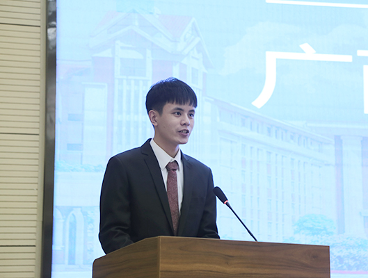 广西大学研究生会代表肖权祝愿北部湾大学研究生会以强大的生命力与感召力,团结带领研究生同学继续凝心聚力,奋勇向前。
