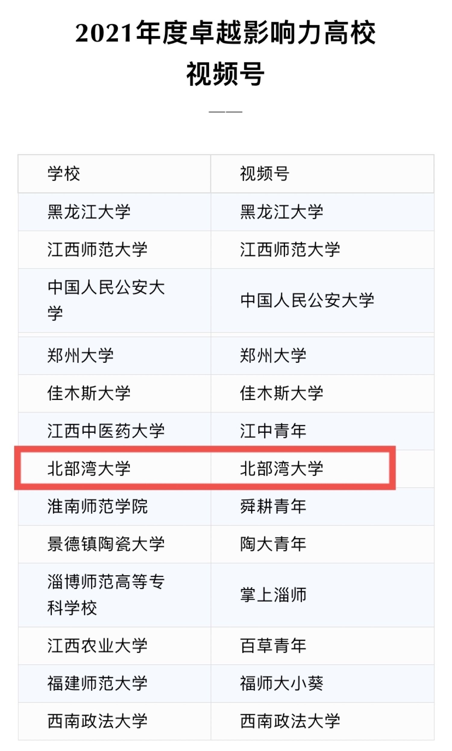 4月26日,中国青年报公布2021年度影响力高校视频号名单,我校视频号获“2021年度卓越影响力高校视频号”称号,位列全国第24强,全区仅一所高校取得该荣誉,并受邀参加颁奖典礼。中国中央财经大学、中国农业大学、西北政法大学等70所高校视频号获得2021年度影响力高校视频号。