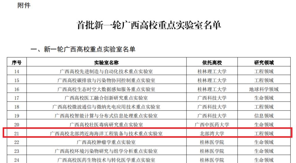 近日,自治区教育厅公布的首批新一轮广西高校重点实验室立项建设名单中,我校“广西高校北部湾近海海洋工程装备与技术重点实验室”获批成为52个重点实验室之一。该实验室依托北部湾大学广西船舶与海洋工程一流学科(B类)、钦州市船舶先进设计制造重点实验室等平台组建,面向建设海洋强国的国家重大战略需求以及广西大力发展“向海经济”与建设海洋强区的地方发展需求。