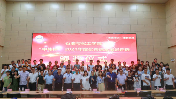 6月16日下午,学校石油与化工学院在众创空间301路演大厅举行“中伟杯”2021年度优秀课堂笔记评选颁奖仪式。校党委常委、副校长唐高华,广西中伟新能源科技有限公司副总经理袁旬出席仪式。学院院长尹艳镇主持。