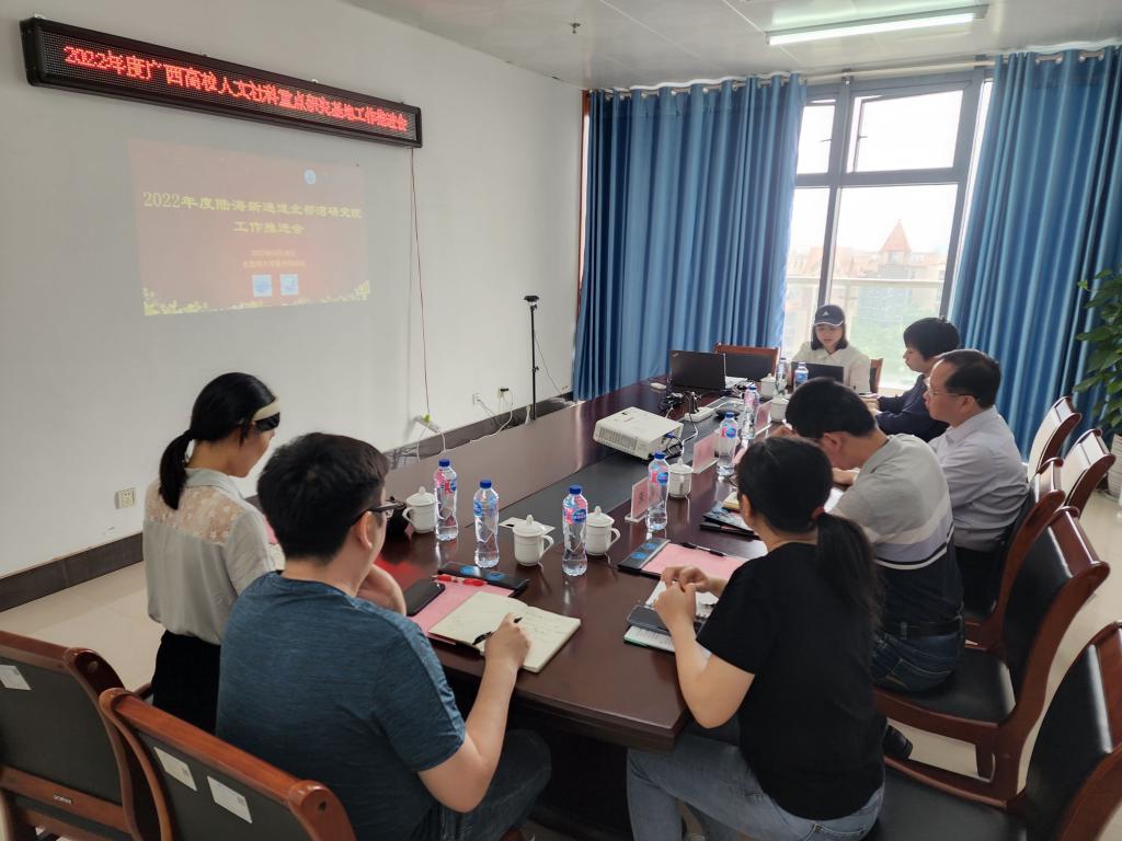 4月28日,自治区教育厅联合广西人文社会科学发展研究中心召开2022年广西高校人文社科重点研究基地工作推进会线上会议。自治区教育厅科研处处长黄青云出席,广西各高校人文社会科学重点研究基地以视频会议形式参会。学校副校长、北部湾海洋发展研究中心主任黄鹄,科技处副处长朱念及研究中心工作人员在图书馆802S会议室会场参会。