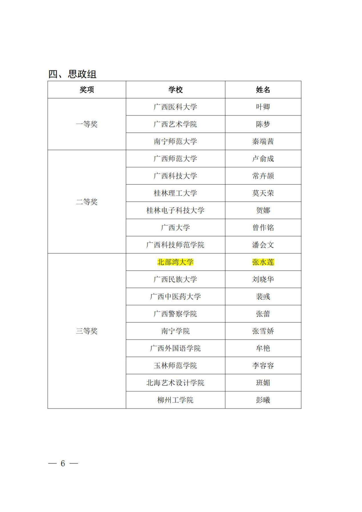 近日,第九届全区高校青年教师教学竞赛结果公布,我校共有两名教师获奖。石油与化工学院的陈波、马克思主义学院的张水莲从全区36所本科高校的125位选手中脱颖而出,分别斩获工科组二等奖和思政组三等奖,充分展现了湾大青年教师的教学风采和精神面貌。