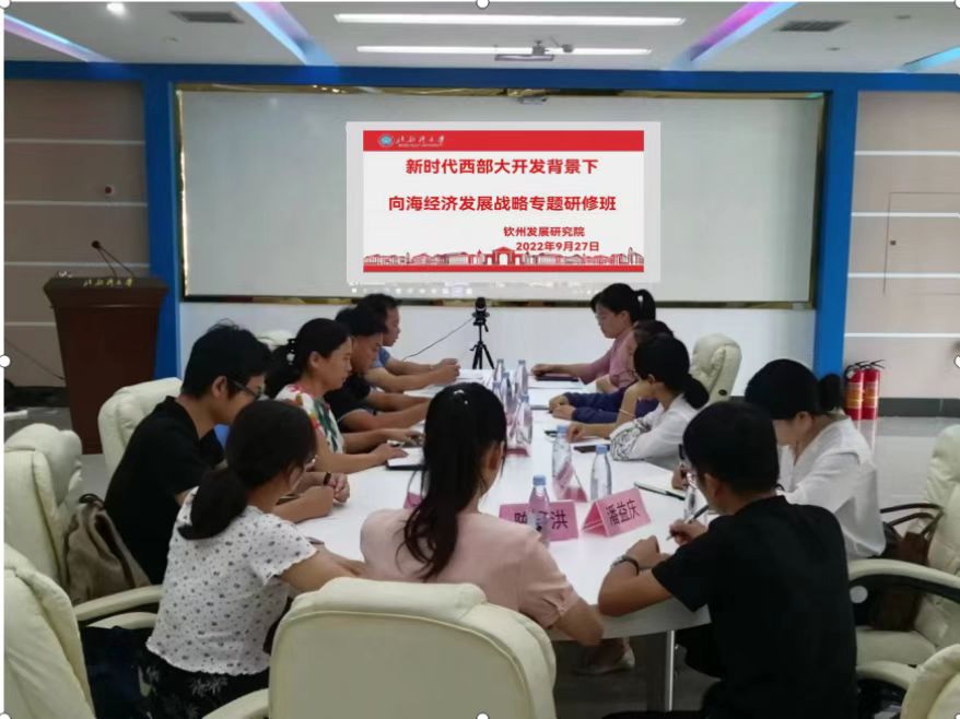 近日,由我校钦州发展研究院承办的人社部“新时代西部大开发背景下向海经济发展战略”专题研修班在图书馆八楼钦州发展研究院学术沙龙室举行开班仪式。来自全国多个省市自治区的60余名学员参加此次高级研修班的学习。