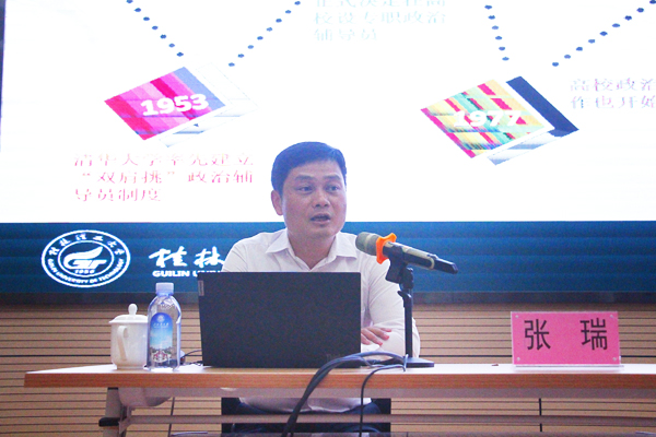 6月9日下午,学校在众创空间301路演厅举办“辅导员工作成果化及科研能力的提升”专题讲座。本次讲座特邀桂林理工大学武装部部长、保卫处处长张瑞教授担任主讲。讲座由我校学(研)工部部长裴以明主持。