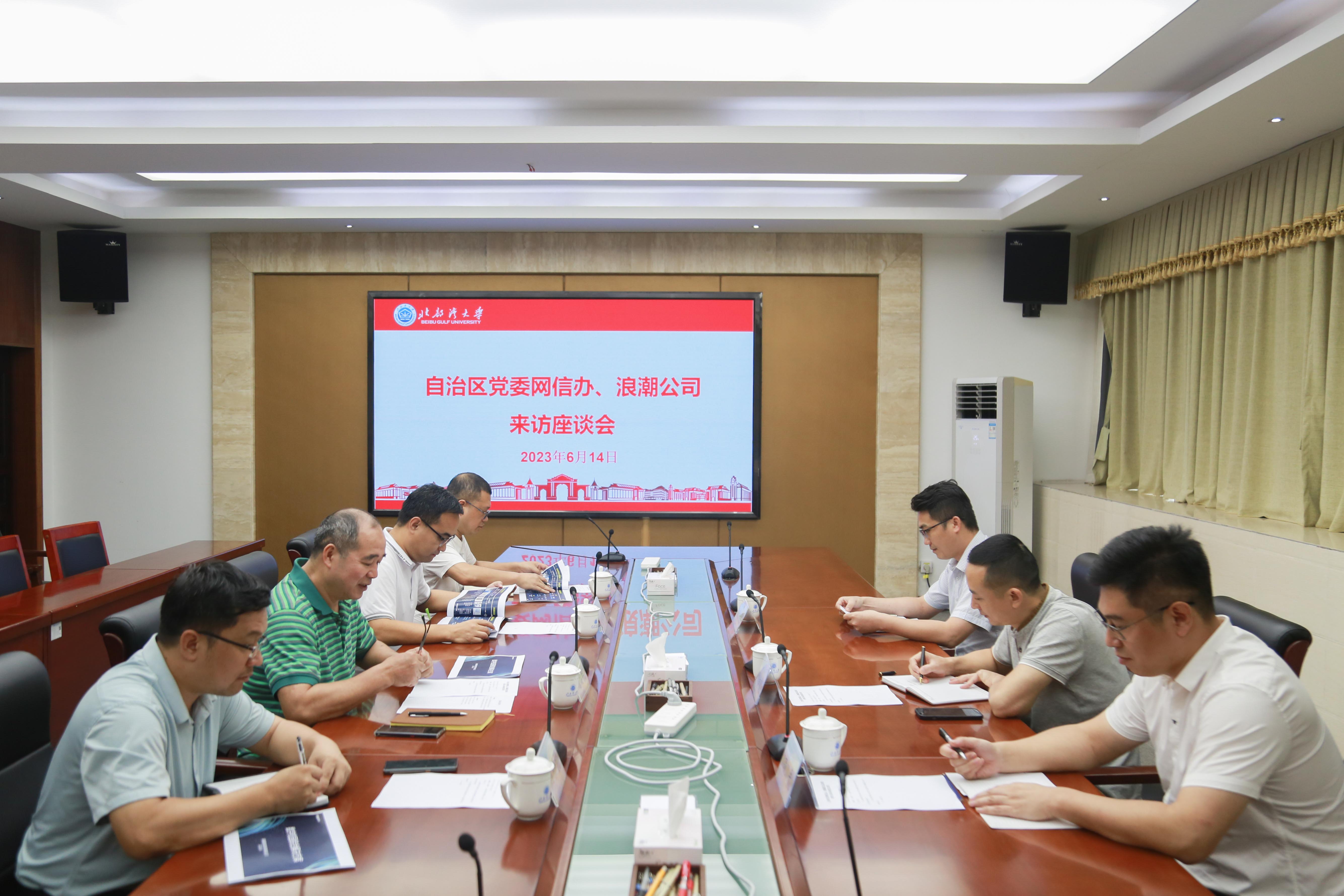 6月14日,自治区党委网信办信息化发展处副处长刘炫鑫、浪潮通信信息系统有限公司广西分公司副总经理高平、浪潮通讯信息系统有限公司地市总经理曾庆良一行来校调研交流。学校党委常委、副校长唐高华主持调研座座谈会。