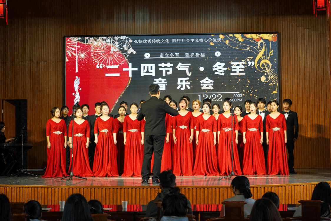据音乐会的导演、人文学院教师解巍介绍,音乐会是《合唱团》课程社会实践的一项内容。课程的教学设计思路之一是跳出课堂、走上社会,搭建多层次社会实践平台,让学生走进乡村、社区服务地方,服务国家“一带一路”发展战略。解老师认为,这样的课程改革创新,有利于学生民族文化认同感、创新意识和社会责任感的增强。
