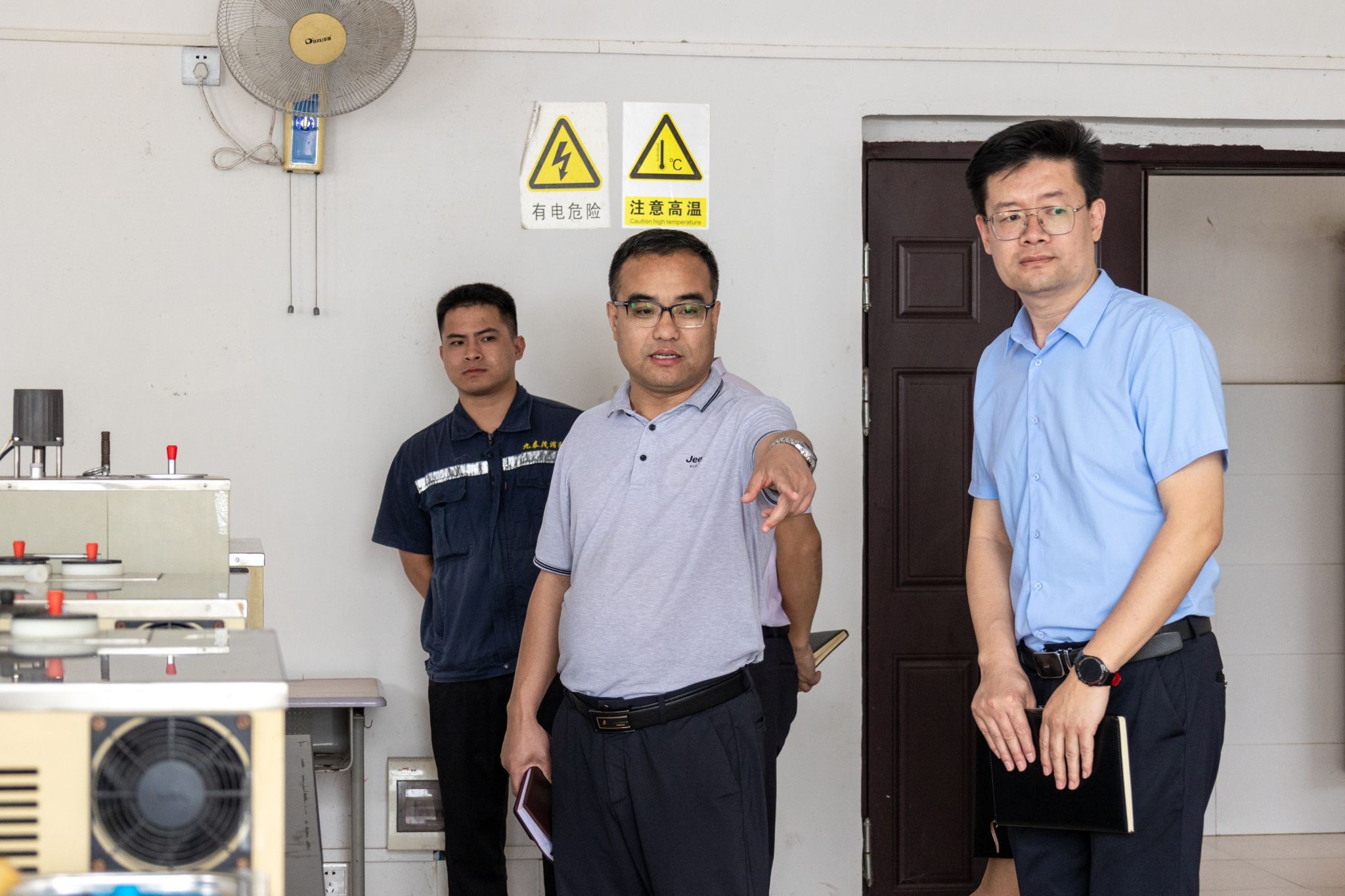 在食品工程学院,马秀明强调要严格对标教育部《高等学校实验室安全检查项目表》,加快推进实验室硬件设施改造;要做好危险化学药品的生命周期管理工作,夯实实验室安全管理责任,落实安全隐患整改;要加强日常管理,及时发现问题、解决问题,切实维护实验室安全稳定。(庞小琴 摄)