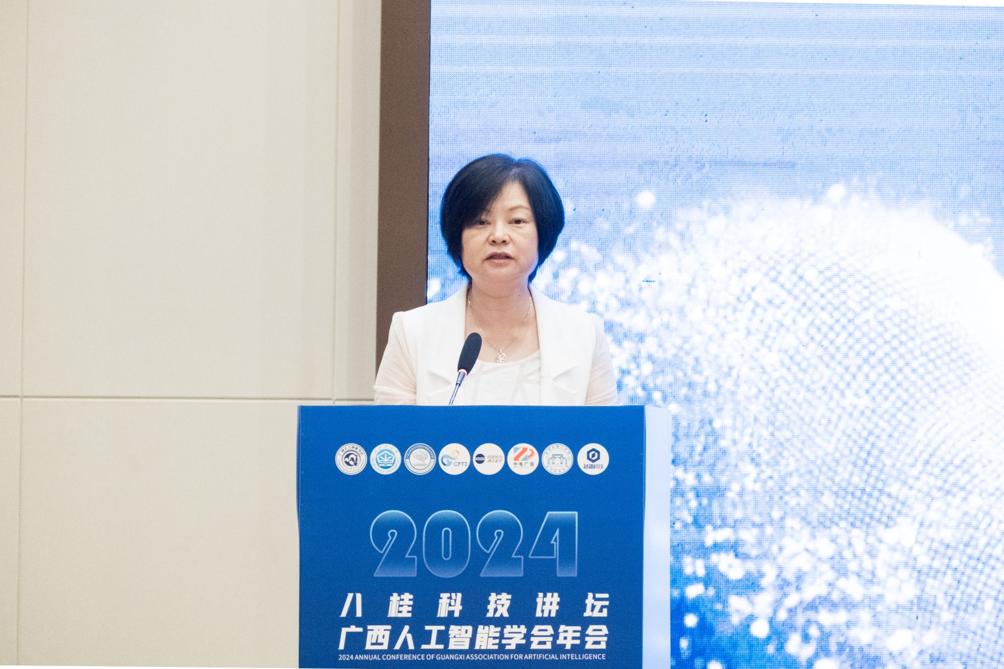 陈丹向长期关心和支持我校及广西人工智能事业发展的社会各界朋友表示衷心感谢。她表示,学校坚持贯彻落实国家、自治区教育数字化决策部署和战略行动,深入实施“质量立校、人才强校、特色兴校、科技促校”发展战略,致力于科技创新与人才培养,尤其是在人工智能领域组建了专门的研究机构进行科学研究和产业化工作。她希望能借此次与广西人工智能学会携手举办年会的契机,促进湾大与区内外乃专家学者共话人工智能前沿技术,共谋产业发展新方向,为推动广西人工智能领域发展贡献智慧和力量。