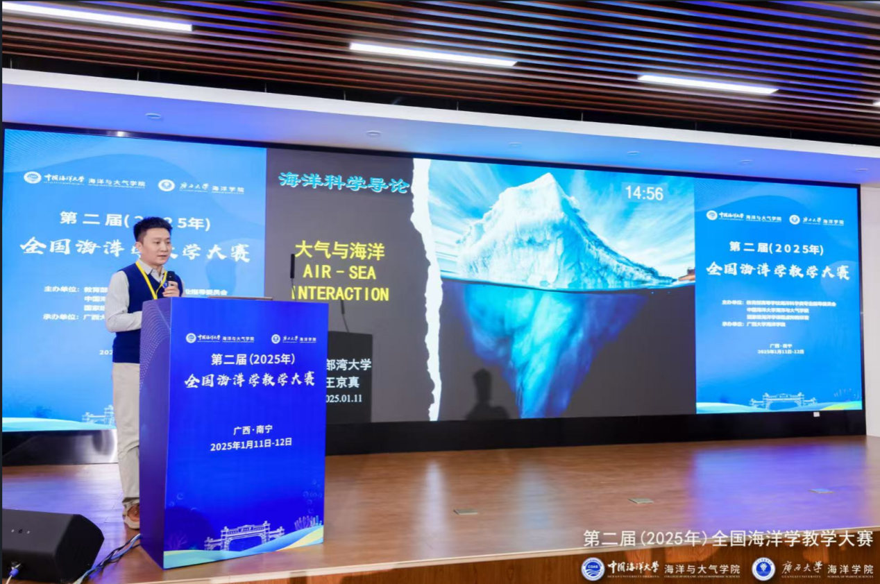 1月11日至12日,由教育部高等学校海洋科学类专业教学指导委员会、中国海洋大学海洋与大气学院和国家级海洋学课程虚拟教研室主办的第二届(2025)全国海洋学教学大赛在广西大学举行。我校海洋学院王京真教授在比赛中荣获三等奖。