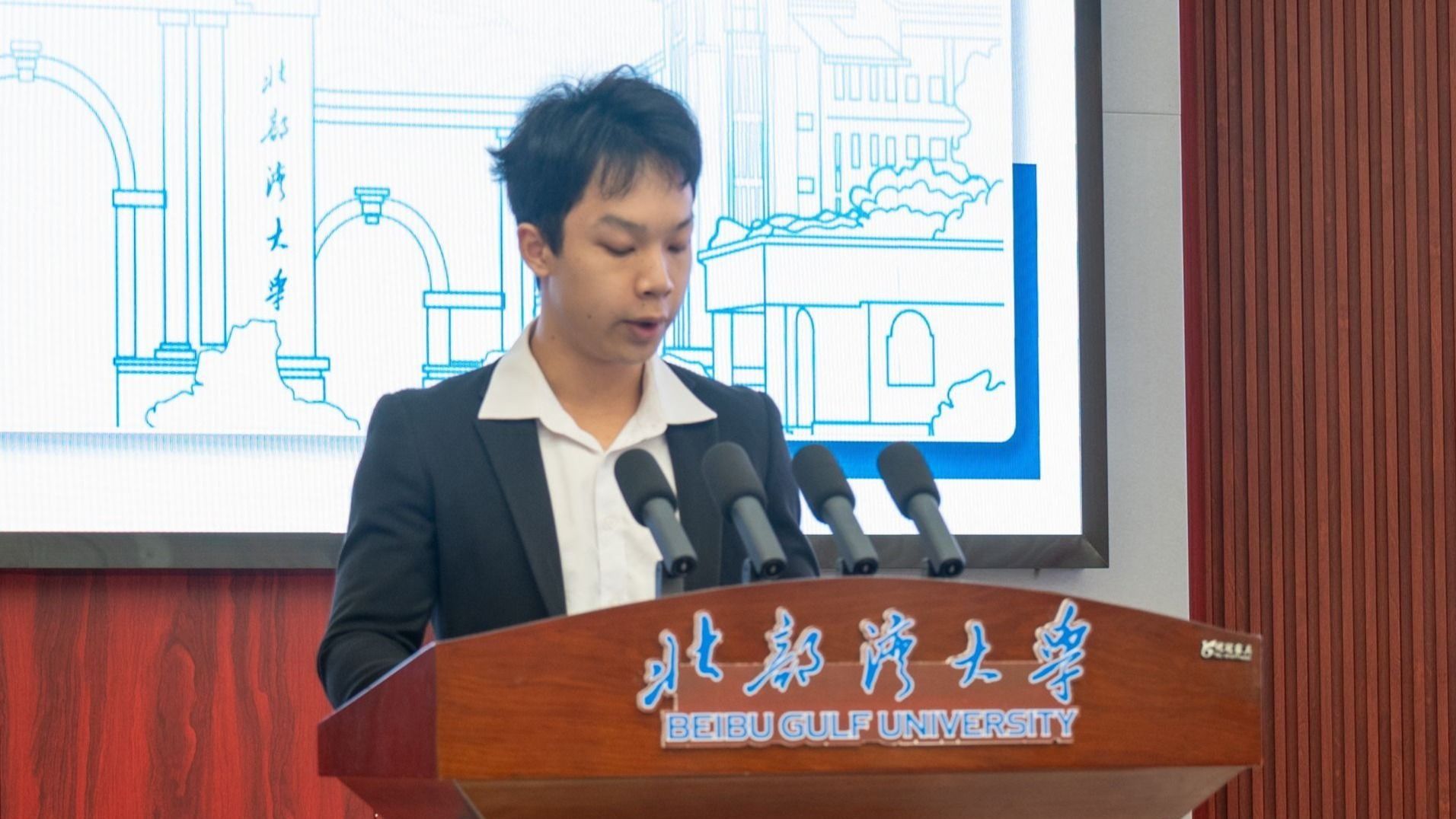 机械与船舶海洋工程学院船海研241班刘熠作为研究生代表发言。他表示,论坛为研究生搭建了良好的学术交流平台,有助于培养服务国家战略需求的科研能力。他呼吁同学们珍惜交流机会,积极探讨,启迪思维,投身实践,为北部湾经济区建设贡献青春力量。
