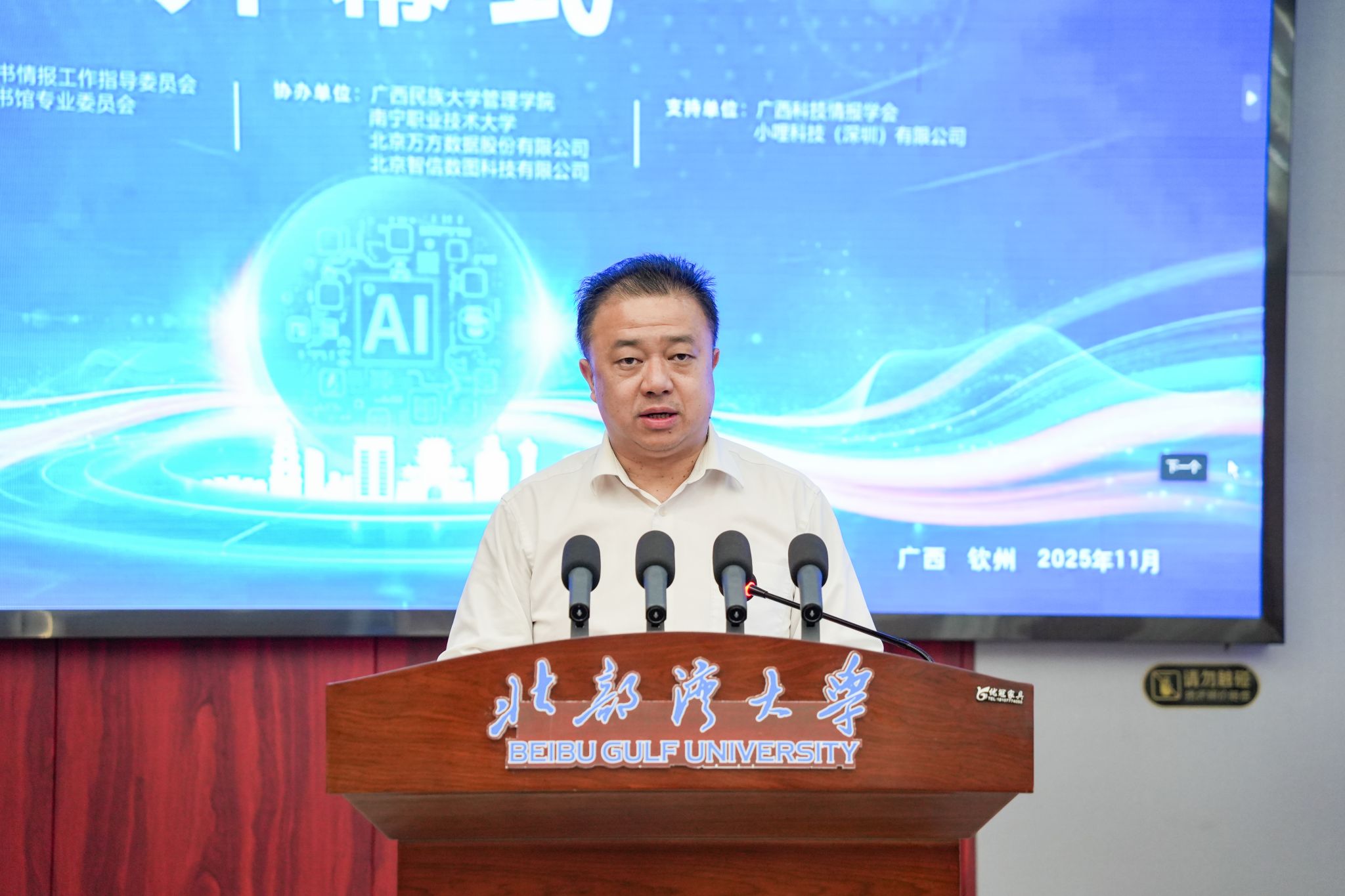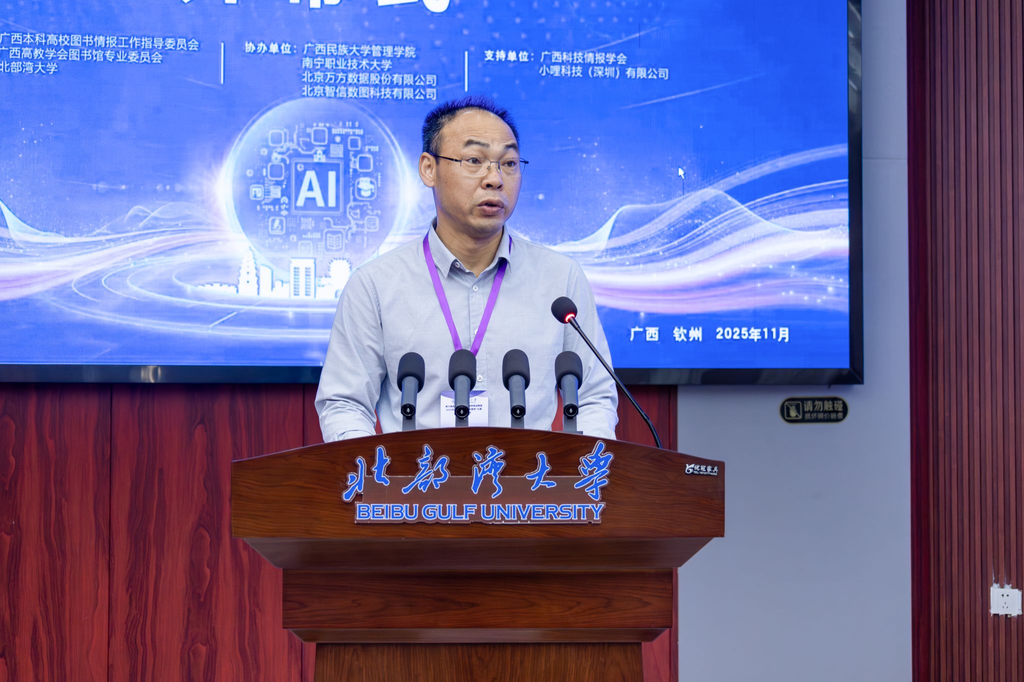 广西高等教育学会图书馆专业委员会理事长、广西大学图书馆馆长李家军讲话