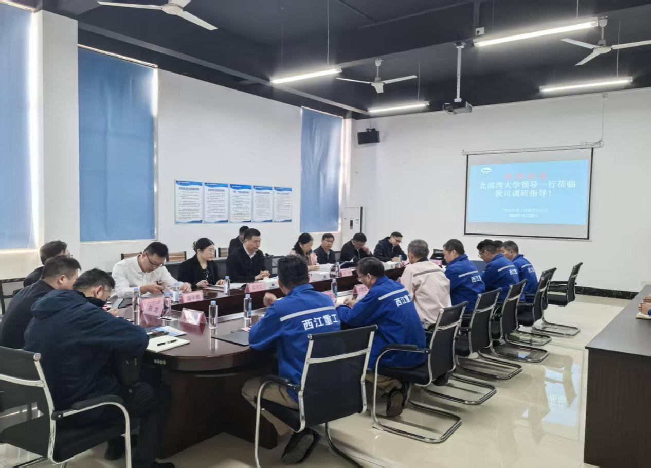 在广西西江重工有限责任公司,陈丹重点介绍了我校在船舶工程、绿色动力、防腐材料等方面的研究基础,希望双方围绕甲醇动力船舶、高性能涂料等方向开展联合技术攻关,共建研发平台,助力西江内河航运绿色转型与贵港制造业高质量发展。