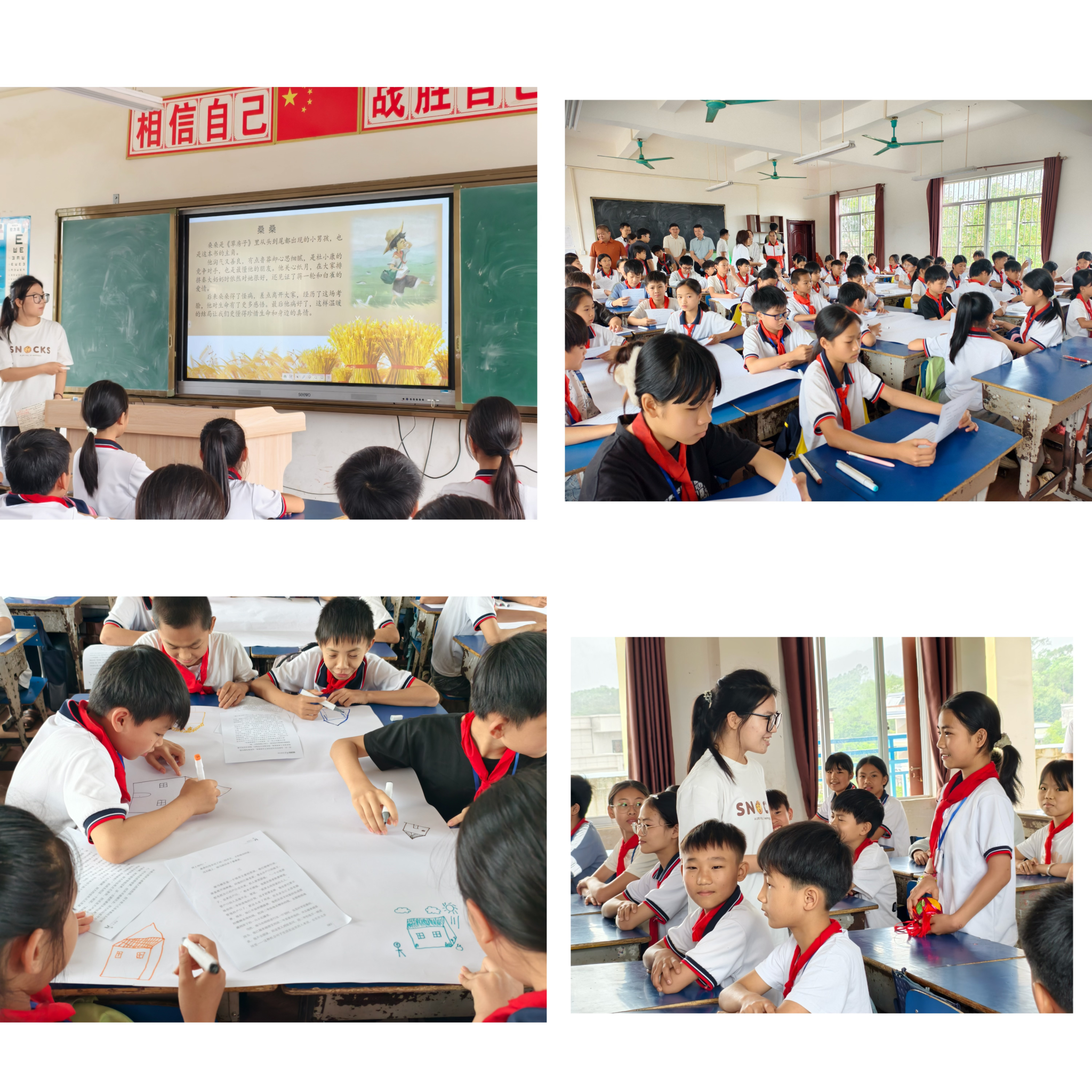 捐赠仪式上,北部湾大学图书馆联合广西超星信息技术有限公司,向良荔村小学、三湖小学捐赠爱心图书118种共300册,涵盖文学、科学、历史等多个领域,满足不同年龄段学生的阅读需求。阅读分享环节,志愿服务团队以《草房子》为阅读分享主题,带领孩子们品味文字之美,并通过分组共读、绘画创作等多元形式,引导学生在沉浸式阅读中主动思考。活动还穿插古诗词对对碰、反诈及防溺水安全知识竞答、“一周一件好事”心愿单及齐唱《国家》等环节,寓教于乐,将文化熏陶与价值引领融为一体。