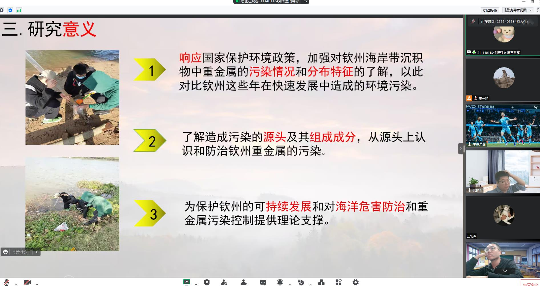 “海洋防灾减灾与污染防控”方向参选学生做项目设想PPT报告