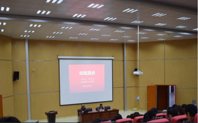 3月21日,中国美术家协会理事、黑龙江省美术家协会顾问、黑龙江省油画学会主席、哈尔滨师范大学博士生导师田卫平教授应邀到我院作了一场主题为“绘画漫谈”的学术报告。学院党委书记、院长张龙出席并主持报告会,参加报告会的还有学院院长助理周晓峰教授、我院250多名师生和钦州美术界同仁。