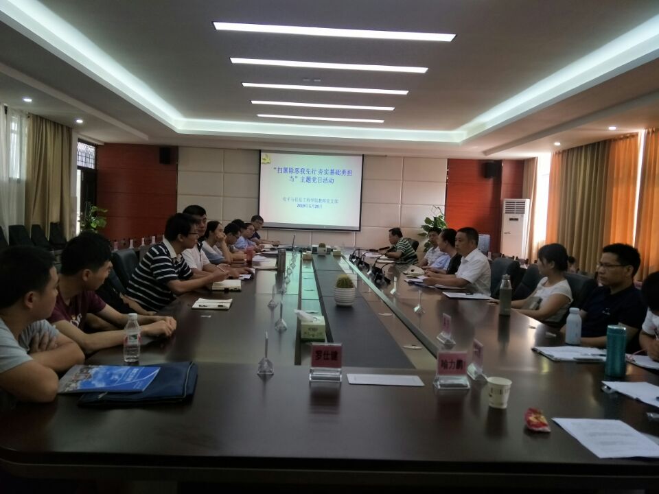5月20日下午,电信学院教师党支部在5-419会议室开展“扫黑除恶我先行 夯实基础勇担当”主题党日活动。主题党日活动由党委副书记、教师党支部书记李贤阳主持,学院教师党支部全体党员参加。