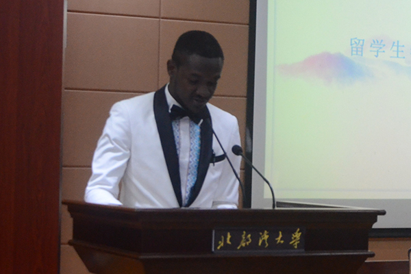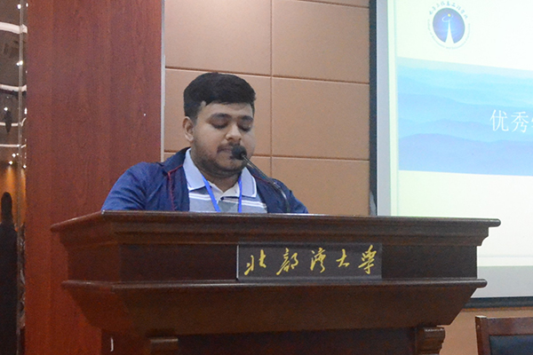 会上,梁家海院长发言致辞,热烈欢迎2019级留学生的到来,祝贺他们成为电信学院大家庭中的一员,同时希望同学们尽快适应校园生活;努力学习,掌握过硬的专业知识;推动中外文化交流,将自己国家的文化介绍给身边的人。接着,留学生学业优秀学生代表Khalid发言,他表示能够到北部湾大学留学是一件很美好的事情,感谢学院里领导和老师的关爱。留学生学生会代表YUNI介绍留学生学生会(CEIE ISU)团队概况,希望2019级留学生积极加入留学生学生会。紧接着进行颁奖仪式,表彰上个学期学业优秀的学生、表现优秀的学生干部。