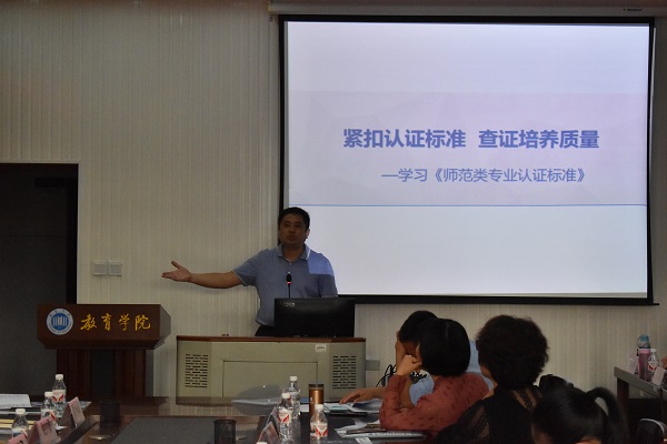 周顺平院长对小学教育专业认证标准(第二级)及一级指标合作与实践中对实践基地建设的要求进行了解读,并表示实践教学基地建设是小学教育专业认证的重要指标,学院将继续大力推进小学教育专业认证,进一步推动专业建设达到新高度。