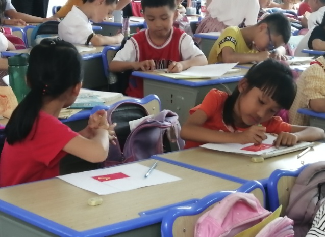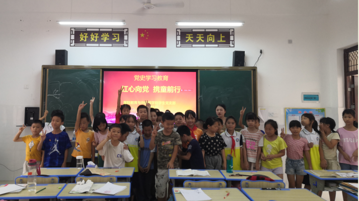 成员们向附小的同学们讲述了国旗、党旗的内涵和意义及英雄先烈的革命故事。大家带领小朋友们一起画国旗、党旗,唱红歌,抢答党史知识问答,气氛轻松而又热烈,欢笑不断。