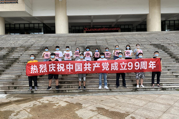 为隆重纪念中国共产党成立99周年,学习宣传贯彻习近平新时代中国特色社会主义思想和党的十九大精神,提升学生党员事务中心的组织力,凝聚力,激发党务工作者活力,加强中心队伍建设,电信学院学生党员事务中心于2020年6月25日开展了庆祝中国共产党成立99周年活动。