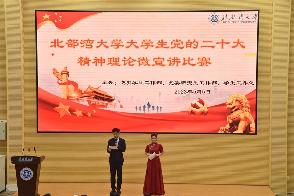 5月5日晚,由学校党委学生工作部、党委研究生工作部、学生工作处主办的北部湾大学大学生党的二十大精神理论微宣讲比赛在12号教学楼210报告厅举行。来自各二级学院的28名选手参加了比赛。
