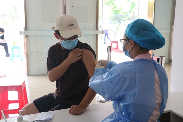 “同学们,请戴上口罩间隔1米,有序排队,接种疫苗后到观察区等候半小时,无异常方可离开。”烈日当空,医务人员不辞辛劳为前来接种疫苗的教职工与学生进行接种。接种工作顺利有序的开展,为广大师生支撑起防护网,也为疫情防控工作打了一剂强心针。相关负责人表示,今后我校将会继续落实钦州市新冠疫情防控要求,努力推进我校新冠疫苗接种工作,确保广大师生生命健康安全。(熊姗姗 柒慧婷 摄)