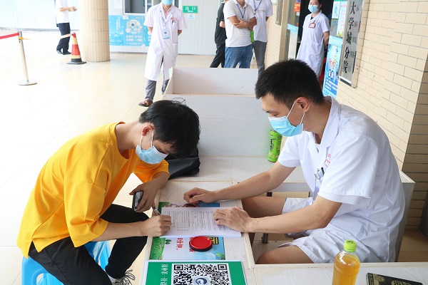 当日下午,我校教职工与学生们佩戴口罩、有序排队,在现场医务人员的指引下进行预诊登记、问询告知、疫苗接种以及接种后留观等程序。医务人员仔细询问每个接种人员的病史、过敏史,筛查不宜接种人群,各个环节均详细告知注意事项,现场秩序井然有序。