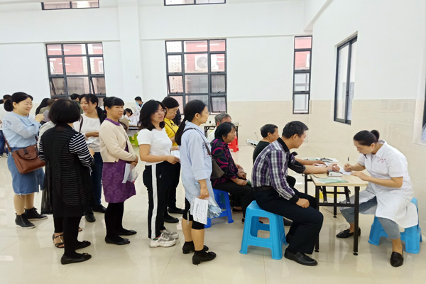 免费筛查活动设有简易肺功能、血糖、血脂、糖化血红蛋白、同型半胱氨酸、尿常规检查、血压测量和调查问卷等项目。活动中,老师们秩序井然、积极参与、配合医生完成各项检查。钦州市第二人民医院为每位参加筛查的教职工都建立了一份心脑血管疾病健康档案,以便日后进行持续随访管理。