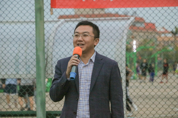 开幕式上,陈磊副校长对本次赛事的举办表示祝贺,对我校中青年教师队伍昂扬向上的精神状态表示赞扬,并提出教职工应作为学生的榜样积极参与运动。他指出,举办足球联赛是教职工走出办公室的第一步,而教职工的积极参与将为学校体育教育添上浓重一笔。同时希望所有的参赛队伍都能赛出风采,赛出水平,并把运动场上涌现的体育运动精神带到各自工作中,营造健康向上的校园文化,为学校建设发展服务。