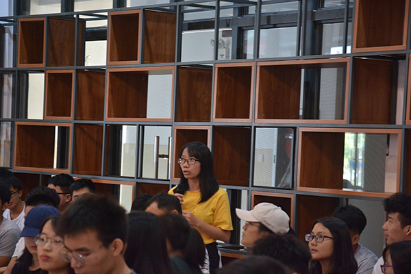 韦科长向大家介绍了钦州的发展现状、当前钦州就业形势、留在钦州就业的路径选择。他还着重在招聘资格、工薪待遇方面详细向大家介绍了五个服务基层的项目,包括选聘高校毕业生到村任职工作、党建工作组织员、农村义务教育阶段学校教师特设岗位计划、“三支一扶”计划、大学生志愿服务西部计划。韦科长还和在场的同学分享了扎根钦州的北部湾大学校友工作经历,并针对学生提出的问题进行解答。