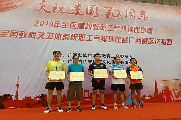 6月29日至7月3日,由自治区教育工会主办的2019年全区高校教职工气排球比赛暨全国教科文卫体系统职工气排球比赛广西赛区选拔赛在广西体育中心举行。全区共有49个高校1300多名运动员报名参加了本次比赛。