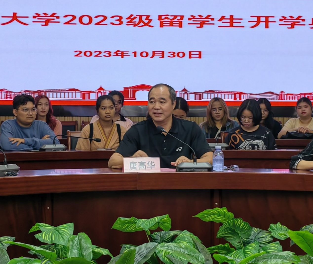 10月30日,北部湾大学2023级来华留学生开学典礼在国际教育与外国语学院222会议室举行。学校党委副书记唐高华、国际教育与外国语学院全体院领导及留学生科老师,来自泰国、老挝、越南的百余名新生参加开学典礼。