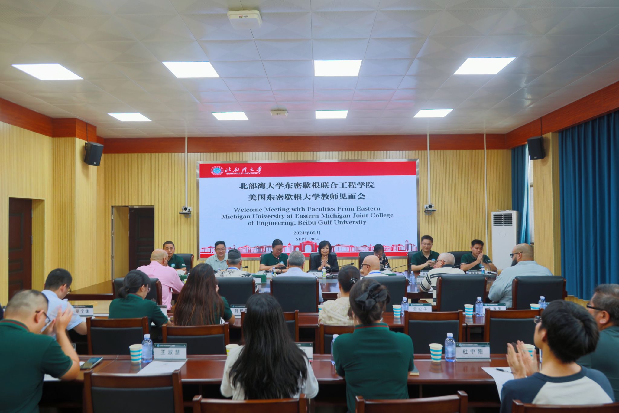 9月3日下午,北部湾大学东密歇根联合工程学院举行2024年秋季学期美国东密歇根大学外籍教师见面会。校党委常委、副校长、学院院长陈丹出席会议,国际交流处处长、国际教育学院院长刘卫玲,教务处副处长、创新创业学院副院长吴炳俊及学院全体教职工、全体合作教师及6名外籍教师参会。