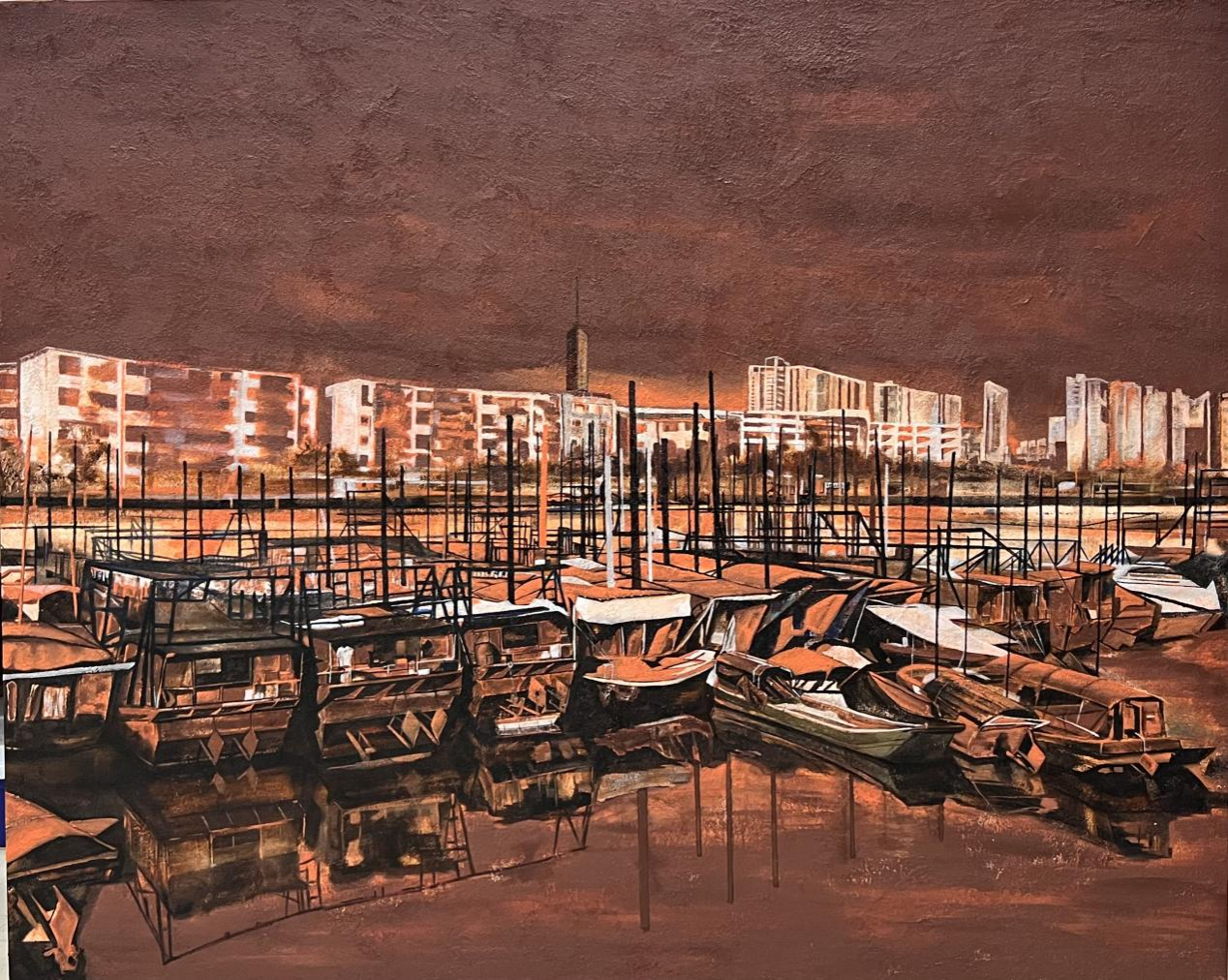 胡燕敏作品:《港埠印象》(油画)150cm×130cm