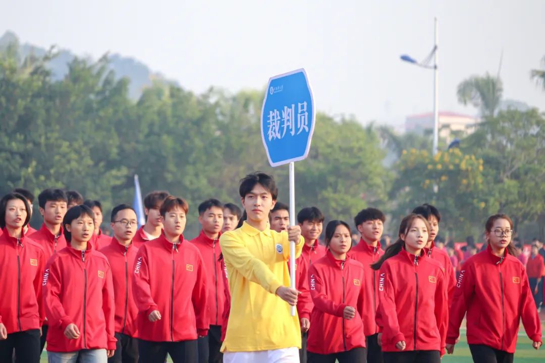 开幕式上,来自不同院系和职能部门的26支方队各出新意、各展风采。国旗、校旗、会徽方队气宇轩昂,步履铿锵,彰显着新时代青年的青春与活力;鲜花方队青春昂扬,手举花束,在校歌旋律中摆出“BBGU”与“50”字样造型,献礼湾大五十芳华;建筑工程学院步伐一致,头戴安全帽彰显建院特色,高举“弘扬工匠精神,铸就学子梦想”,展现美好期望;机械与船舶海洋工程学院的方队手持轮船模型,后方别出心裁地紧跟遥控机器车……队员们整齐划一的步伐,高亢嘹亮的口号向观众展示他们饱满的热情和昂扬的斗志,让湾大精神在体育赛场上熠熠生辉。