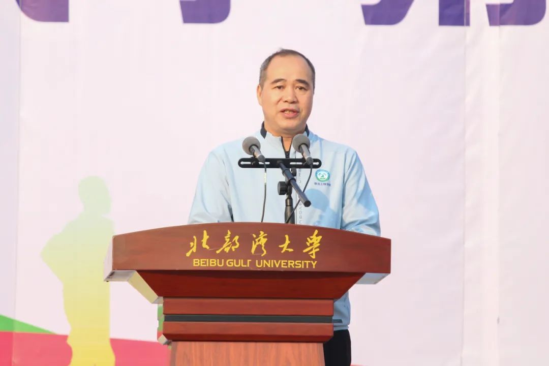 学校党委副书记、校长苗剑宣布北部湾大学第三届体育节、第十四届田径运动会暨第一届教职工趣味运动会开幕。