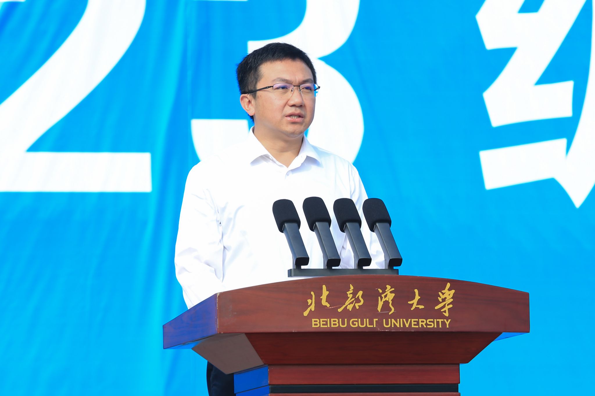 陈磊代表学校对钦州军分区的领导和教官表示热烈欢迎和衷心感谢。他指出,军训是深入贯彻党的二十大精神,全面贯彻落实党的教育方针、落实立德树人根本任务和新时代军事战略方针的需要,是推进学生德智体美劳全面发展、加强全民国防教育和加强国防后备力量的根本需求。他向同学们提出三点建议:一是提振精神气,端正态度作风,从思想上高度重视军训;二是严守铁的纪律,认真遵守军训纪律,维护军训秩序,走好每一个步伐,喊好每一个口号,做好每一个动作;三是养成优良作风,确保生活规律,内务整齐,树立北部湾大学学子积极向上,朝气蓬勃的良好形象。