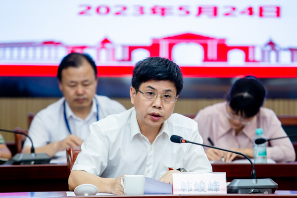 韩峻峰围绕习近平总书记关于教育的重要论述精神,领学了党的二十大报告、《习近平著作选读》《习近平新时代中国特色社会主义思想专题摘编》等主题教育学习用书。在中心发言中,他指出,习近平总书记关于教育的重要论述把党对教育规律的认识提升到了新高度,为新时代中国教育发展提供了根本遵循、指明了前进方向。深刻领会习近平总书记关于教育的重要论述的重大意义、思想内涵和精神实质,对推进教育现代化,办好人民满意的教育,具有长远的战略意义和重要的时代价值。