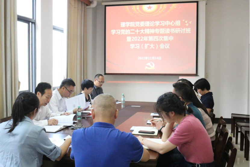 11月14日下午,校党委常委、纪委书记谢立平巡听旁听理学院党委理论学习中心组学习党的二十大精神专题读书研讨班暨2022年第四次集中学习(扩大)会议。会议在1号教学楼338会议室召开,理学院党委书记黄嵘主持。学院党委理论学习中心组全体成员、党支部书记、党政办主任、学工办主任、组织员等参加会议。