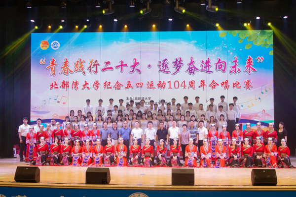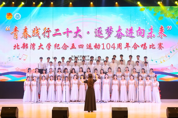 “青春践行二十大·逐梦奋进向未来”合唱比赛在宣誓余音中拉开帷幕,16支参赛队伍与北部湾女子合唱团、北部湾学生合唱团依次登场,唱出对党、对祖国最深切的爱和最美好的祝愿,奏响新时代旋律,唱响新青年“五四精神”的时代最强音。