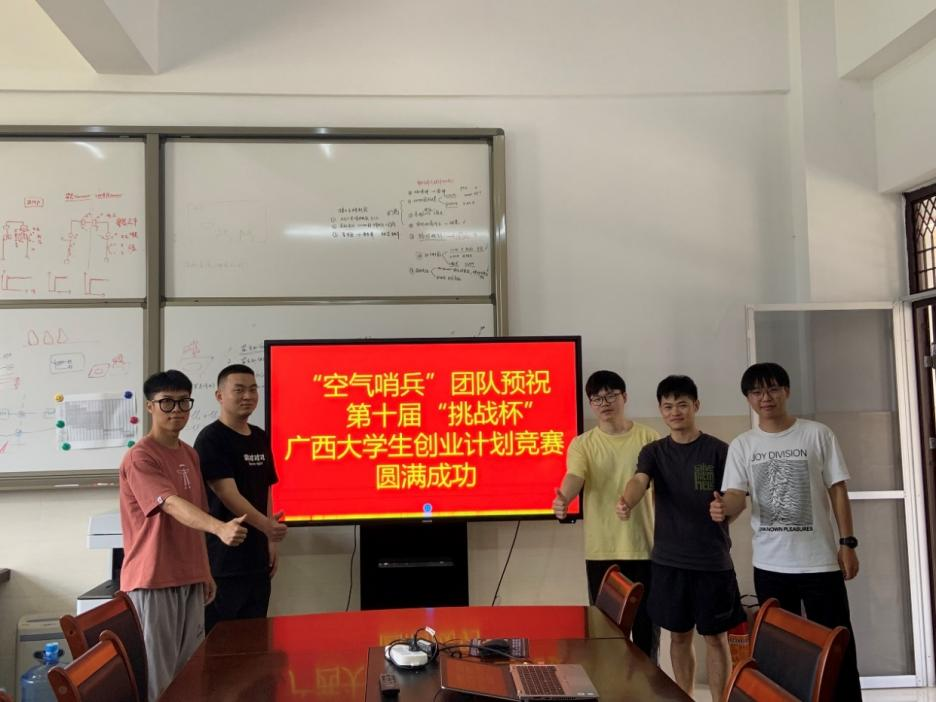 “挑战杯”是挑战杯全国大学生系列科技学术竞赛的简称,是由共青团中央、中国科协、教育部和全国学联共同主办的全国性的大学生课外学术实践竞赛,“挑战杯”竞赛在中国共有两个并列项目,一个是“挑战杯”中国大学生创业计划竞赛,另一个则是“挑战杯”全国大学生课外学术科技作品竞赛。这两个项目的全国竞赛交叉轮流开展,每个项目每两年举办一届。在第十届“挑战杯”广西大学生创业计划竞赛中,先端院一共有两个项目参与比赛,在朱留存教授、张震副教授、罗俊琦讲师的指导下取得优秀的成绩。其中《空气哨兵——低成本全时空 PM2.5 监测系统》项目获省银,《智能“大白”——AI 防疫先锋队》项目获省铜。