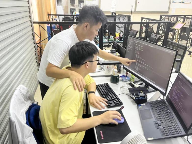 烈日炎炎、暑假留下来学习的氛围也同样热火朝天。在先端院无人系统实验中,夏博士介绍到随着无人设备行业的高速发展,多机器人、编队、集群以及协作等应用频率越来越高。特别是无人集群系统,在灾情救援、智能物流和消费娱乐等方面展现出了极大的应用场景。并现场演示了多智能体的协同控制、机器人定位导航的演示与讲解,各位研究生同学都展现出对无人系统极大的兴趣。朱教授与夏博士在暑假期间对无人系统的各位成员亲切指导,在浓厚的科研氛围下,大家都表示希望在暑假期间取得一定的成果。