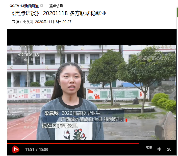 优异的成绩、进步的思想、良好的品德和优秀的素质,这些都能够在梁息秋毕业后为她在城市里获得一个好的工作岗位,获得不错的经济收入,再也不被贫困所羁绊。但她选择了重回家乡,那个养育了她的广西柳州融水——国家级深度贫困县,做一名特岗教师。