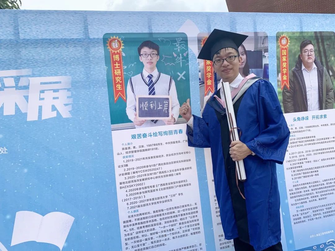 “其实一开始,我来到北部湾大学时,并不知道自己以后的学术生涯该如何规划。”相比2019年“有些迷茫”的陈金源,而今已是广东外语外贸大学博士生的他则说,逐渐找到目标并坚定信念,是他读研两年里最大的收获,更是指引他走向考博成功彼岸的源动力。