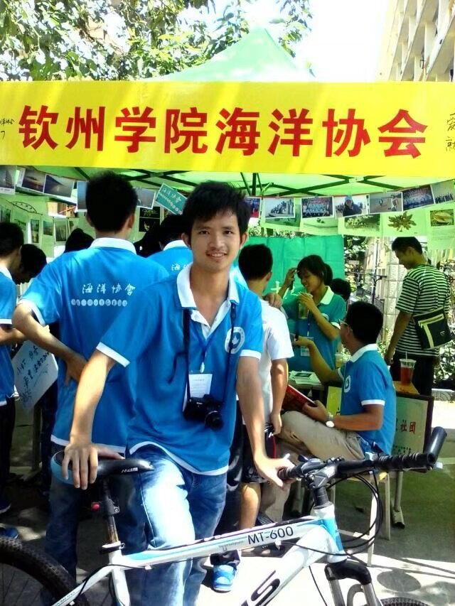 陆旋在钦州学院(现北部湾大学)就读本科时参加海洋协会活动