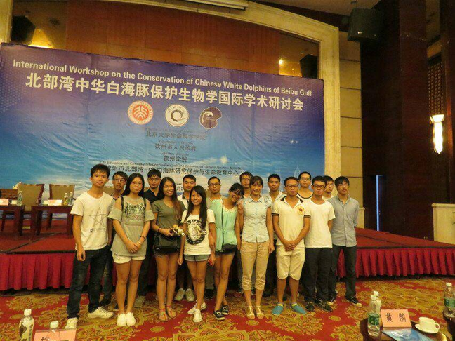 陆旋(左一)在钦州学院(现北部湾大学)就读本科时参加学术会议留影