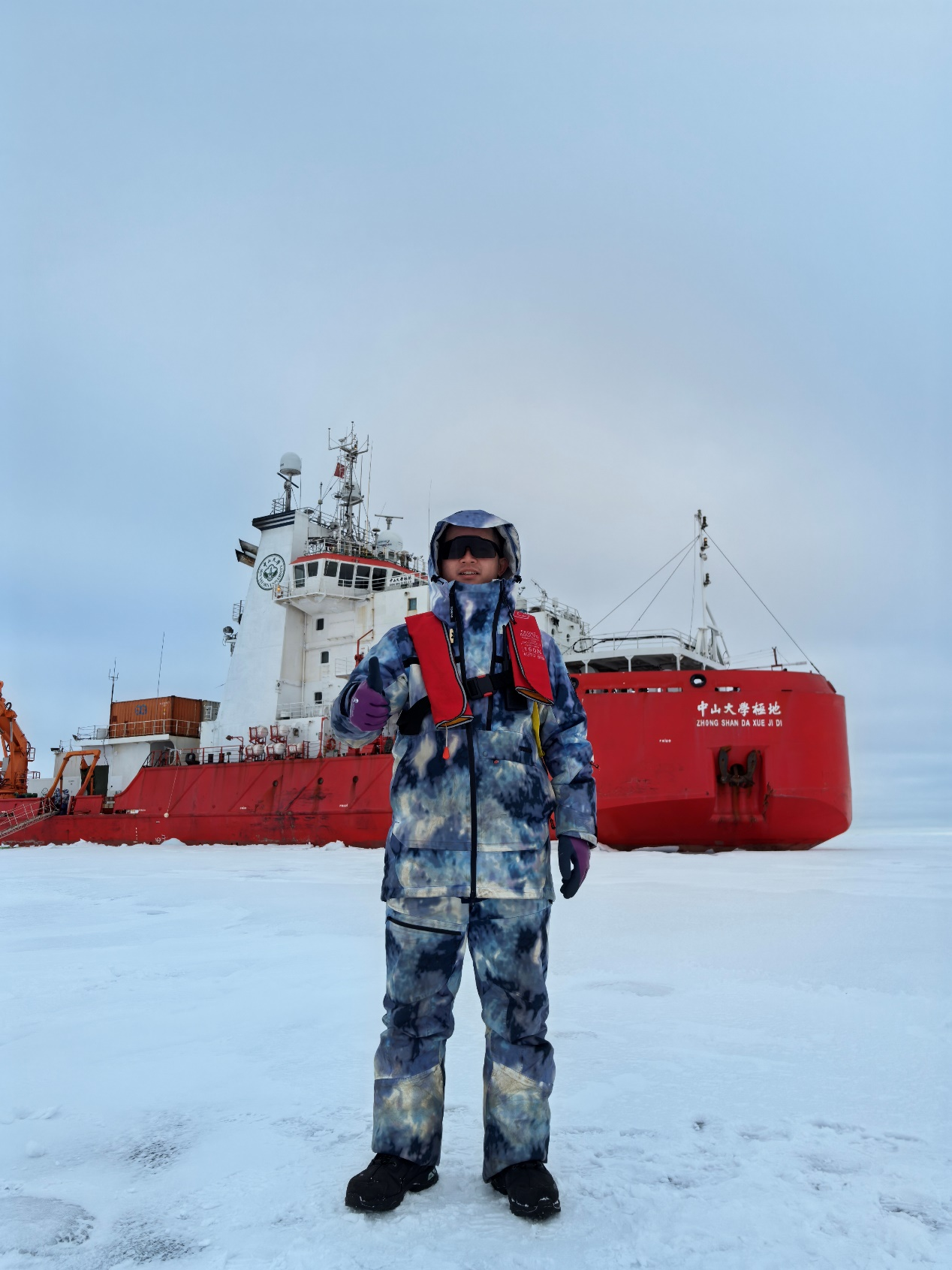 陆旋随“中山大学极地”号破冰船开展科考工作,在北极留影